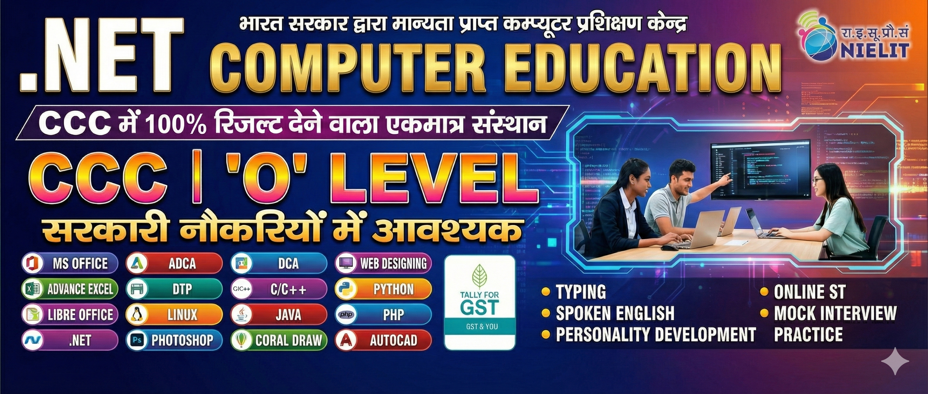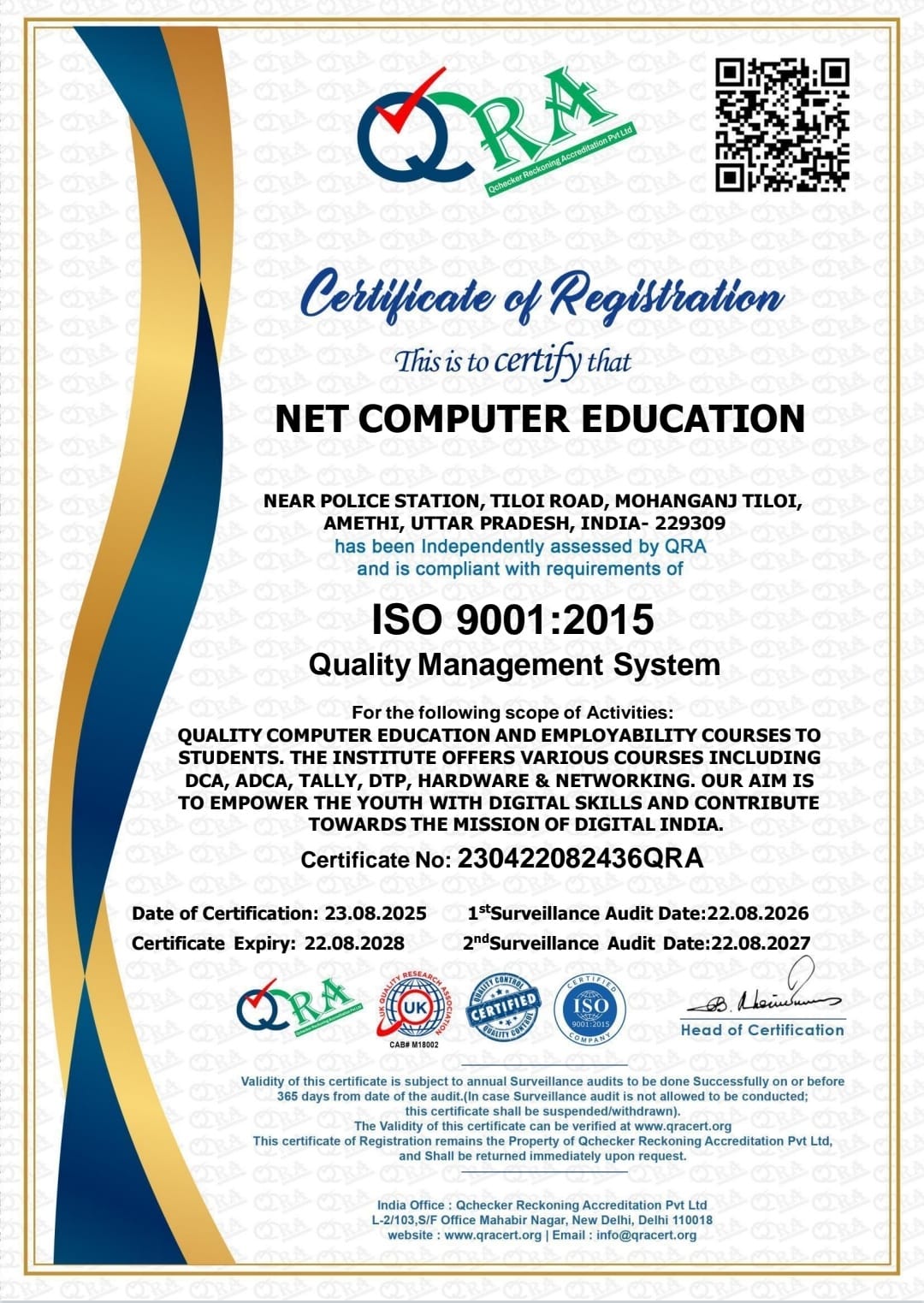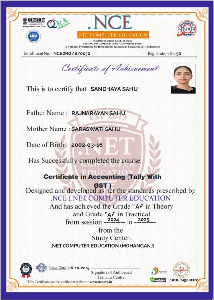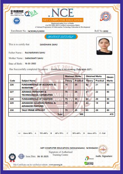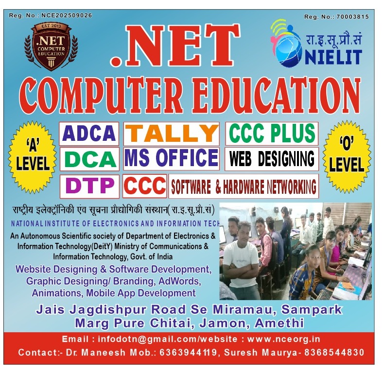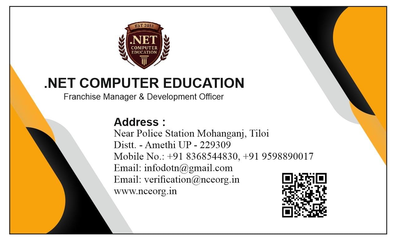 NET COMPUTER EDUCATION Registered by : ISO 9001:2015 Certified Institute Experienced & Qualified Faculty Modern Labs & Digital Classrooms Job-Oriented Courses (DCA, ADCA, Tally, DTP, ‘O’ Level, etc.) 100% Practical-Based Training Nationally Recognized Certificates